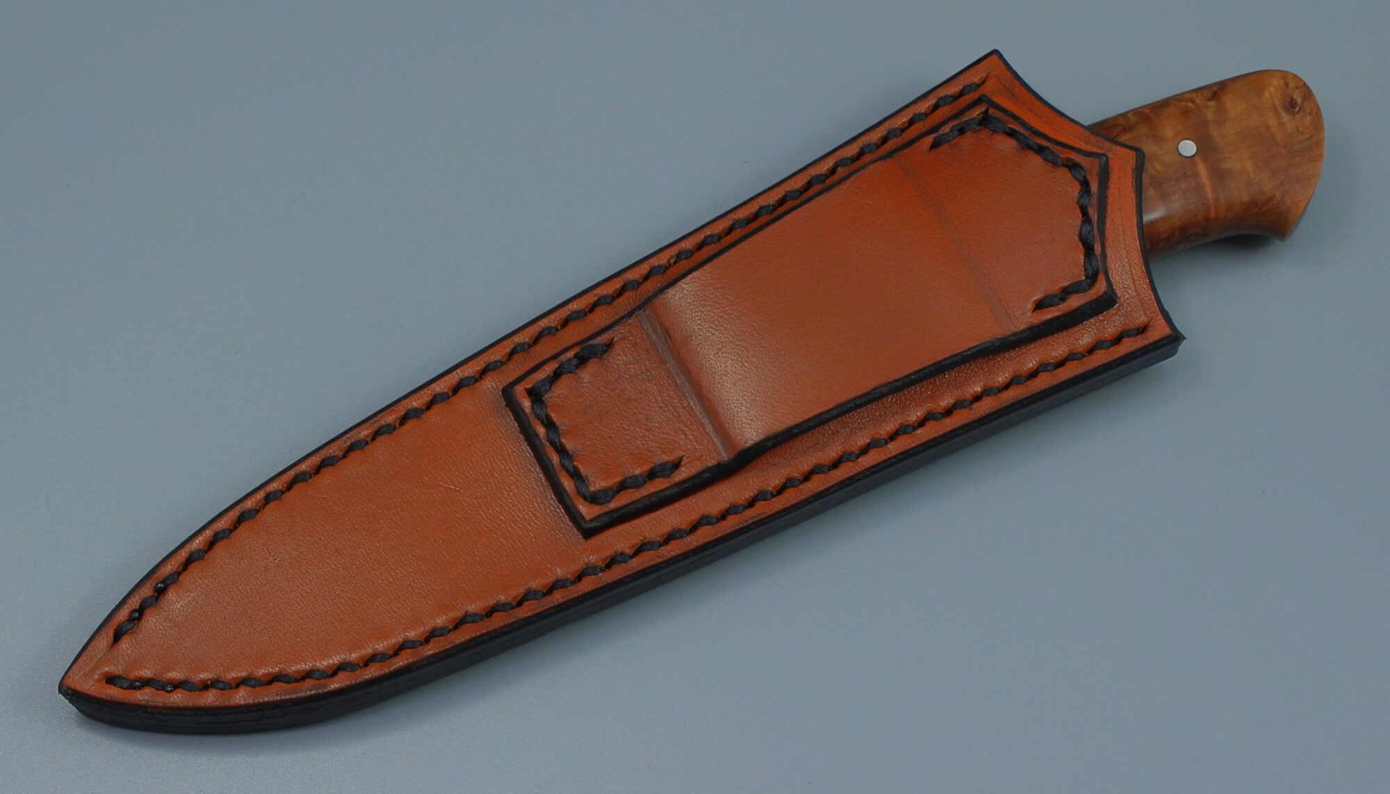 I suppose it is the combination of a thin grind and a fine grain of the steel that makes these knives scary sharp. This one has 3,8mm thick blade, 10 cm long, one of the 3D printed bolsters and a stabilized birch.